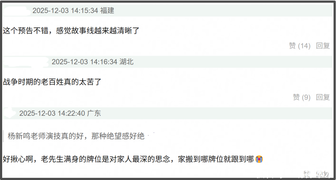 预告中,许多看似平平无奇的话语,却包含着值得深思的含义。小人物的守家之战,让人看得既心酸又热血。那是战争时代百姓的命运,有着最真实的苦与泪。一个又一个被摧毁的家园,让怀揣着新仇旧恨的百姓下定决心与日本人殊死一搏,清晰的故事线看得观众既觉得揪心,又觉得很燃。