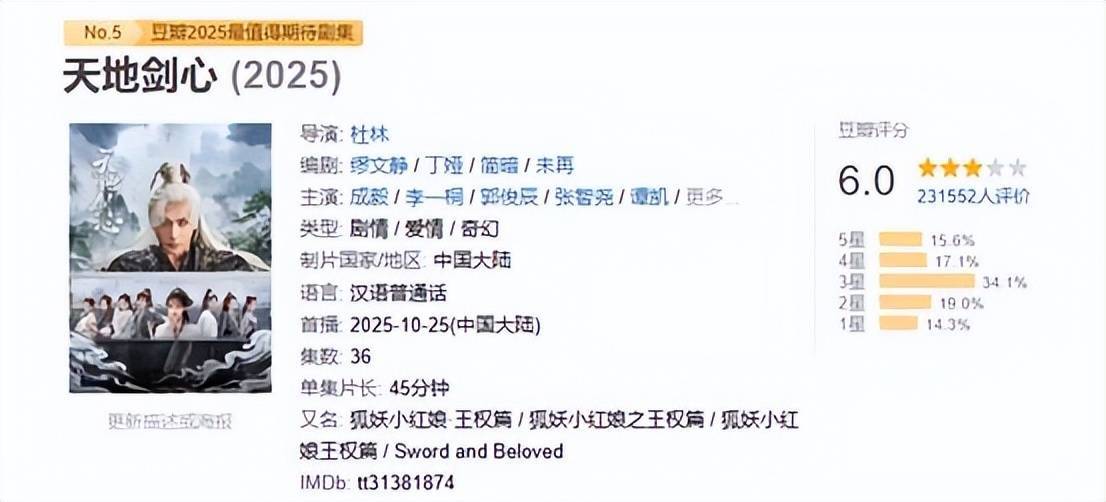 明明被寄予厚望,结果却播的不温不火,后期更是魔改到了“左右脑互搏”的地步,豆瓣20多万人打出6.0的评分真的不冤!