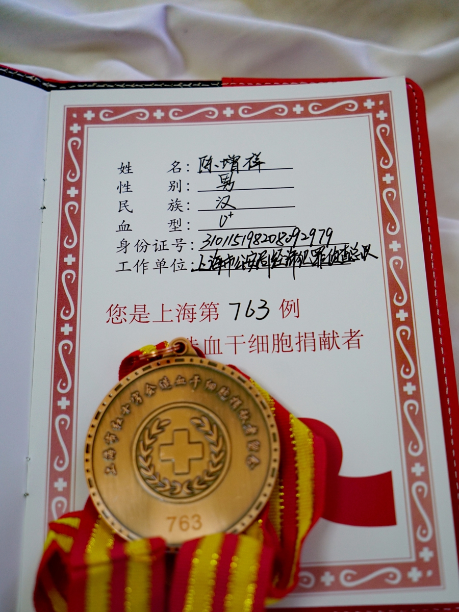 今天(11月28日),上海市公安局经济犯罪侦查总队民警陈增祥顺利捐献造血干细胞,为一位血液病患者送去了“生命的种子”,成为上海市第763例造血干细胞捐献者,也是上海经侦总队首例成功捐献的民警。