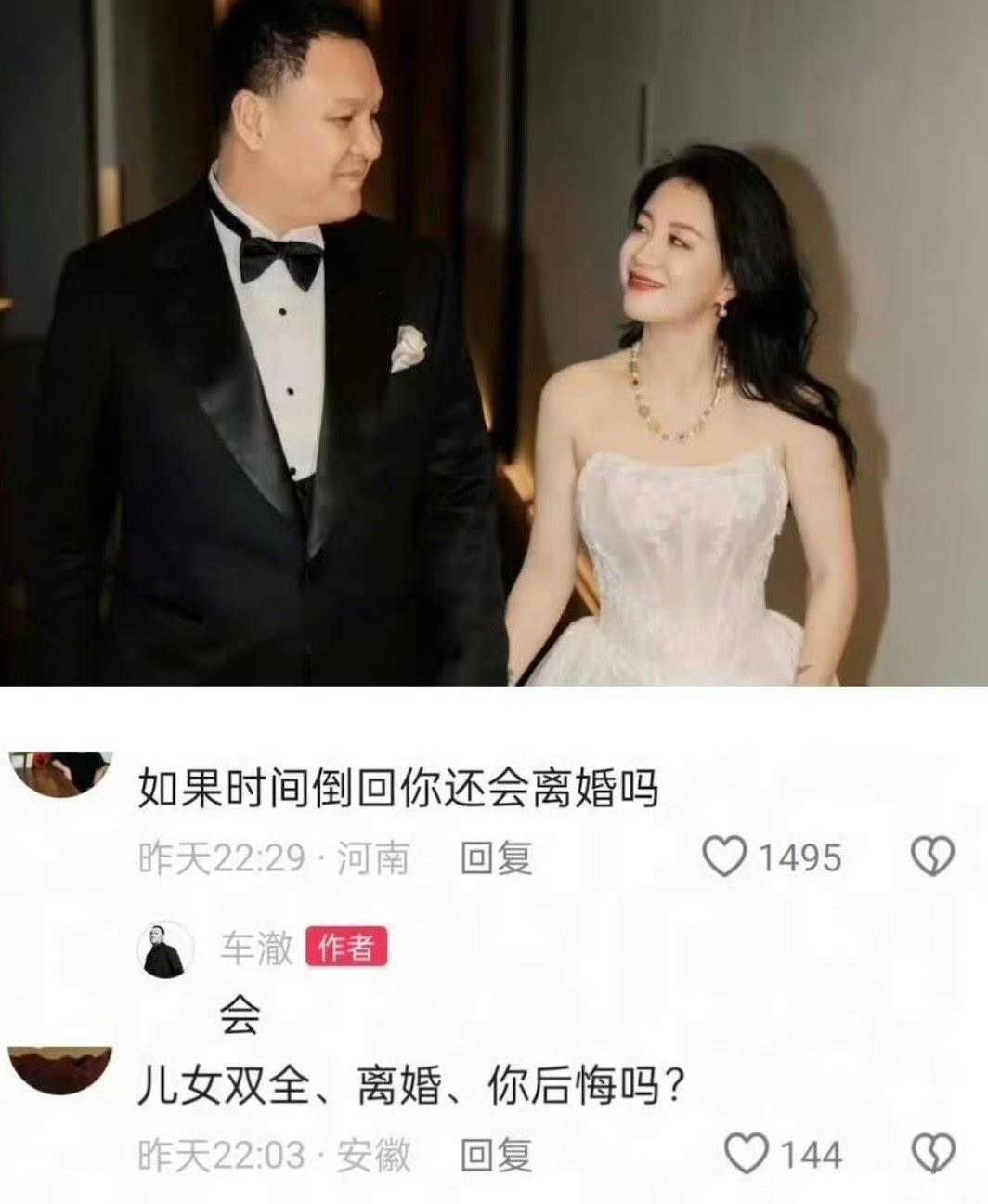 前夫车澈那边也有动作,他在11月30日回复网友说当然不后悔离婚、没有回头必要,车澈的这个时间点刚好在李嘉格新恋情曝光前几天,网友普遍猜测他是不是已经知道什么。因时间点早于新恋情曝光,其表态被解读为破防预告或挽尊。